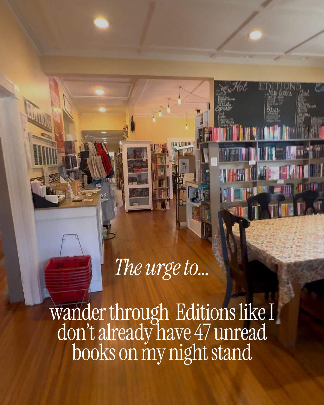If you know me, you know I am a bookstore wanderer. I absolutely do not need more books but Editions never fails to pull me in. There is something relaxing about strolling through the shelves, sipping a latte, and giving yourself permission to slow down for a minute. Books plus coffee equals an instant mood lift.