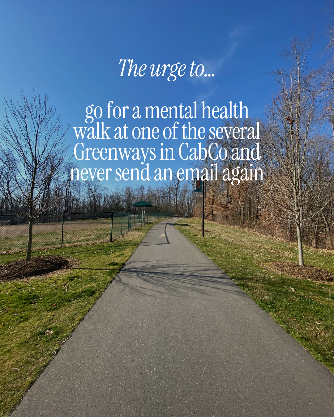 Cabarrus County has several beautiful greenways that are perfect for a mental health walk. Fresh air, quiet paths, and space to clear your head are a lifesaver during busy seasons. Whether you start in Concord, Kannapolis, Harrisburg or Mount Pleasant, you can find a peaceful trail that makes you forget that your inbox is yelling at you.